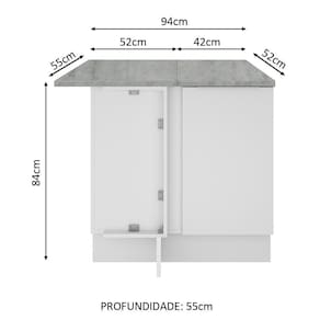 Itens inclusos: - Um (1) Balcão de 84 cm de altura x 94 cm de largura x 55 cm de profundidade com uma (1) porta, uma (1) prateleira interna e dois (2) tampos.