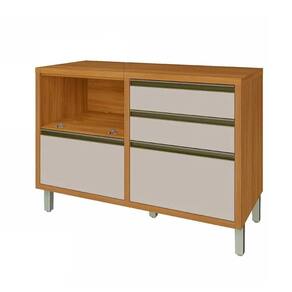Material Principal: MDF | Cor: Freijó e Off White | Marca: Nesher | Possui Portas: Sim | Quantidade de porta: 1 | Possui gavetas: Sim | Quantidade de gaveta: 4 | Possui Pés: Sim | Quantidade de Prateleiras: Não possui | Porta com Vidro: Não | Altura: 86 | Largura: 120 | Profundidade: 52 | Acabamento: Pintura UV | Balcão Suporta Pia: Não | Tipo de Porta: Basculante com pistao a gás | Pés Reguláveis: Sim | Possui Recorte para Cooktop: Não | Modelo: Baronesa | Garantia: 3 meses | Necessita Montagem: Sim | Quantidade de Caixa de embalagem: 1 | Tipo de móveis de cozinha: Balcão de cozinha | Inclui manual de montagem: Sim