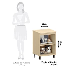 Balcão De Cozinha 100% Mdf 2 Pts 60cm Aura Luciane Móveis Carvalho
