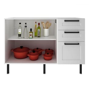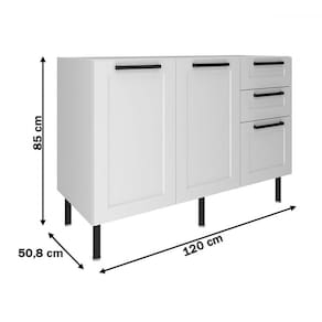 O(a) Balcão de Cozinha 120 Cm 2 Portas 3 Gavetas Cz3300 Branco - Tecno Mobili é produzido em MDF na escala de brilho Semi-Brilho, e possui um grau de dificuldade de montagem: Médio.