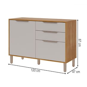 O(a) Balcão de Cozinha 120 Cm Divina 2 Portas 2 Gavetas Cinamomo/Off White - Mgm Móveis é produzido em MDF na escala de brilho Fosco, e possui um grau de dificuldade de montagem: Médio.