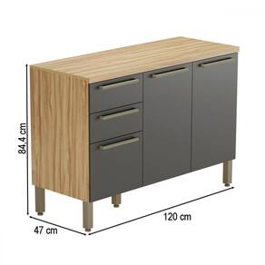 O(a) Balcão de Cozinha 120 Cm Napoli 3 Portas 2 Gavetas 100% Mdf Amêndoa/Cinza - Rio Doce é produzido em 100% MDF na escala de brilho Semi-Brilho, e possui um grau de dificuldade de montagem: Médio.