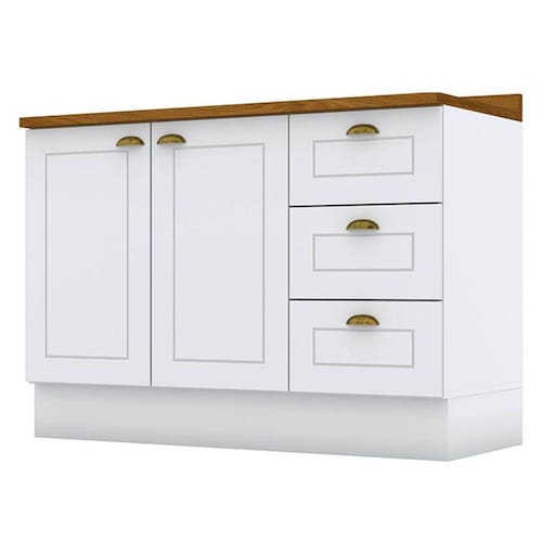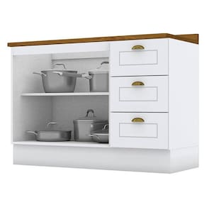 Balcão de Cozinha 120 cm Nova York Branco com Tampo Nature – Henn