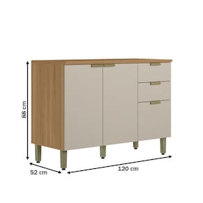 O(a) Balcão de Cozinha 120 Cm Selene 2 Portas 3 Gavetas 100% Mdf Jequitibá/Off White Fosco - Linea Brasil é produzido em 100% MDF na escala de brilho Fosco, e possui um grau de dificuldade de montagem: Médio.