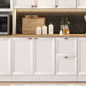 O Balcão 2 portas 2 gavetas sem tampo flex Unna da Poliman Móveis é um produto elegante ideal para ser utilizado como balcão para pia 1,20m x 0,50 m (tampo vendido separadamente. São 2 portas de bater com dobradiças reforçadas de 35mm e prateleira interna, 2 gavetas com corrediças telescópicas que permitem abertura total, possui puxadores modelo retro em polímero com acabamento em alta cobertura para deixar seu móvel ainda mais elegante, contém pés em PVC reguláveis ao piso de 14,5cm que permitem o nivelamento perfeito, também acompanha rodapés removíveis com presilhas modelo click que facilita na hora de fazer a limpeza . Estrutura em MDP Perffect Touch de maior resistência e com proteção Bacterban que inibe a proliferação de fungos e bactérias na superfície do móvel, as portas e gavetas são almofadadas/molduradas em MDF inspiradas nas clássicas cozinhas internacionais. Produto ecologicamente correto com embalagens preparadas para evitar danos e permitir que o produto chegue em perfeito estado em sua casa. Perfeita combinação com os mais variados ambientes. Qualidade que só a Poliman oferece em seus produtos. Suporta Granito: Sim Acabamento da Prateleira: Pintura Escala de Brilho da Prateleira: Fosco Acabamento da Gaveta: BP Marromamínico Escala de Brilho da Gaveta: Fosco Material do Puxador da Gaveta: Plástico Acabamento da Porta: BP Marromamínico Escala de Brilho da Porta: Fosco Material do Puxador da Porta: Plástico Acabamento: BP Marromamínico Acabamento dos Pés: Plástico Acompanha Tampo: Não Altura dos Pés: 14,5 cm Ambiente Principal: Cozinha Balcão Acompanha Pia: Não Complexidade da Montagem: Média: pode ser montado por mais de uma pessoa e/ou necessite de maior conhecimento para montagem Cor: Branco Cor do Produto: Branco Cor Flex: Não Cor Interna: Branco Escala de Brilho: Fosco Gaveta com Chave: Não Informações Complementares: Balcão flex para ser utilizado com pia de 1,20m, portas de bater, dobradiças de 35mm, prateleira, corrediças telescópicas, puxadores retro em polímero metalizado, portas almofadadas/molduradas em MDF, pés reguláveis, rodapés removíveis com presilhas modelo cl Itens Inclusos: 1 Balcão, kit ferragens e manual de montagem Manual de Montagem e Instalação: https://cdn2.madeiramadeira.com.br/atributo/poliman/912067-12525-unna-balcao-cuba-tampo-1-20-ed-a4.pdf Material da Gaveta: MDP Material da Porta: MDP Material da Prateleira: MDP Material dos Pés: PVC Montagem Flex: Não Necessita Montagem: Sim Origem do Produto: Nacional Pés Reguláveis: Sim Peso: 34 kg Peso Máximo por Gaveta: 2 kg Peso Máximo por Prateleira: 3 kg Possui Pés: 05 Possui Portas: 02 Possui recorte para Cooktop: Não Recomendações de Uso, Manutenção e Limpeza: Para limpeza utilize pano macio levemente umedecido e na sequência pano seco. Não usar produtos químicos ou abrasivos. Sapatas Niveladoras: Não Sistema de Montagem: Parafusos, pregos, cavilhas. Suporta Até (kg): 15 kg Tipo de Corrediça da Gaveta: Telescópica Tipo de Dobradiça/Corrediça da Porta: Tipo de Porta: Bater Tipo de Puxador da Gaveta: Externo Tipo de Puxador da Porta: Externo