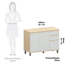 Balcão de Cozinha 120cm 3 Portas e 2 Gavetas Com Tampo Aura Luciane Móveis - Cinza Claro