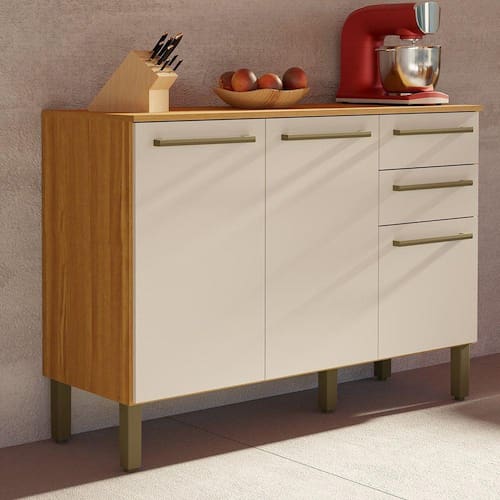 O Balcão para cozinha 120cm é um ítem indispensável para uma perfeita organização. Com 2 gavetas que deslizem por corrediças telescópicas e 1 prateleira interna proporciona um espaço amplos pensados para acomodar os utilitários de uso diário em sua cozinha. Produzido em 100% MDF com garantia de qualidade. Acompanha tampo em MDF 15mm de espessura. Suporta Granito: Não Acabamento da Prateleira: Pintura UV Escala de Brilho da Prateleira: Semi-Brilho Acabamento da Gaveta: Pintura UV Escala de Brilho da Gaveta: Semi-Brilho Material do Puxador da Gaveta: ABS Acabamento da Porta: Pintura UV Escala de Brilho da Porta: Semi-Brilho Material do Puxador da Porta: ABS Produto Montado: Sim Acabamento: Pintura UV Acompanha Tampo: Sim Altura dos Pés: 17 Altura Máxima dos Pés: 17.0000 Ambiente Principal: Cozinha Balcão Acompanha Pia: Não Cesto para Frutas: Não codigo_ean: 7909903492628 Complexidade da Montagem: Média: pode ser montado por mais de uma pessoa e/ou necessite de maior conhecimento para montagem Cor: Amêndoa/Off White Cor do Produto: Amêndoa/Off White Cor Interna: Amêndoa Escala de Brilho: Semi-Brilho Gaveta com Chave: Não Itens Inclusos: 1 Balcão, Kit Ferragens e Manual de Montagem. Linha ou Coleção: Paris Manual de Montagem e Instalação: https://product-hub-prd.madeiramadeira.com.br/878364/documents/ab3c8634-42f8-4ca1-b477-fd8e3ff67fc9tagembalcocarmenereverso03.pdf Material da Dobradiça/Corrediça da Porta: Metálica Material da Gaveta: MDF Material da Porta: MDF Material da Prateleira: MDF Material do Tampo: MDF Material dos Pés: ABS Medida do Tampo (L x C x E): 41 x 120 x 1,5cm modular: Sim Necessita Montagem: Sim O Balcão Acompanha Pia: Não Origem do Produto: Nacional Pés Reguláveis: Sim Peso: 30,52 kg Peso Máximo por Gaveta: 5 kg Peso Máximo por Prateleira: 5 kg Possui Pés: 05 Possui Portas: Sim Possui recorte para Cooktop: Não Recomendações de Uso, Manutenção e Limpeza: Para limpeza utilize pano macio levemente umidecido em água seguido de pano seco. Não utilizar produtos corrosivos ou abrasivos para não danificar a camada de verniz. Sapatas Niveladoras: Não Sistema de Montagem: Parafusos altoatarraxantes, conjuntos minifix, cavilha madeira, acessórios plásticos/metálicos Suporta Até (kg): 30 kg Tipo de Corrediça da Gaveta: Telescópica Tipo de Dobradiça/Corrediça da Porta: Simples Tipo de Porta: Bater Tipo de Puxador da Gaveta: Externo Tipo de Puxador da Porta: Externo Ean: 7909903492628