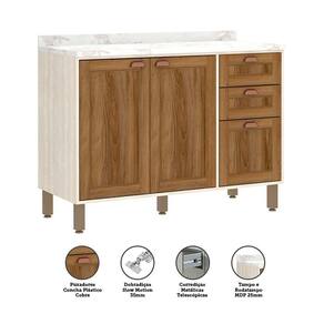 Balcão De Cozinha 120cm Com Tampo Sofia Luciane Móveis Pátina Ff Com Moscatto Ff O Balcao de Pia para Cozinha 120 cm Sofia foi desenvolvido aliando beleza e praticidade ao seu ambiente. As portas embutidas remetem ao planejado, ainda conta com acessorios requintados como dobradicas em 35mm com amortecimento Slowmotion, dobradica com amortecedor incorporado para fechamento suave de portas, puxadores plasticos na cor Bronze e pes em Ps (poliestireno) na cor champagne. Possui 3 gavetas com corredicas metalicas telescopicas em tres estagios, para abertura total. Perfeito para sua cozinha. Caracteristicas: Corpo/Caixaria: Patina FF (Finish Foil) Frontais: Frontais: MDF 18mm Moscatto FF (Finish Foil) Dobradicas: Metalicas 35 mm Slowmotion (com amortecedor) Puxadores: Plastico - Bronze Corredicas Metalicas Telescopicas em 3 estagios, garantindo abertura total das gavetas Portas: 2 Prateleiras: 1 Gavetas: 3 Pes: P S - Champagne