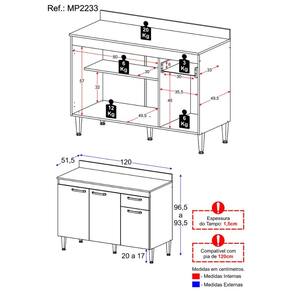 Dimensões do produto montado: Altura: 96,5cm | Largura: 120cm | Profundidade: 51,5cm *Você pode consultar as medidas detalhadas na imagem técnica do produto.
