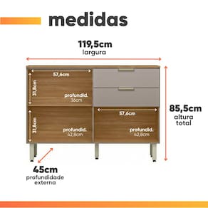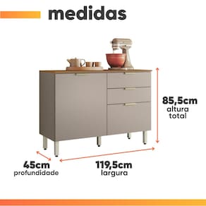Balcão de Cozinha 1,20m 2 Portas 2 Gavetas Alba - Madeirado | Bege