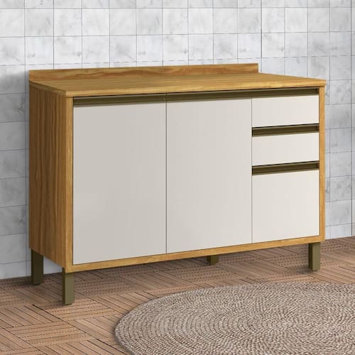 O Balcão de Cozinha 2 Portas 3 Gavetas Amêndoa/Off White Tempranillo Móveis Ronipa é a escolha perfeita para quem busca um móvel funcional, elegante e de alta qualidade para a sua cozinha. Transforme seu espaço culinário com essa peça que une estilo e praticidade.
