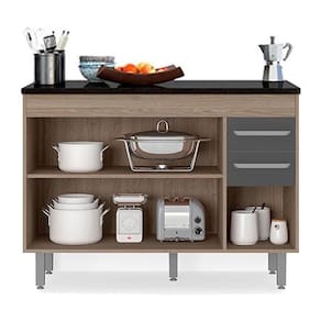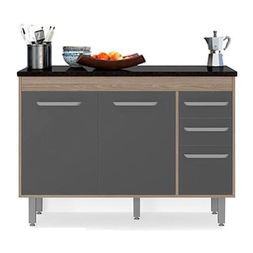 Balcão de Cozinha 3 Portas 2 Gavetas 120cm Flex Carvalho Grafite Lacca Ônix – Poliman