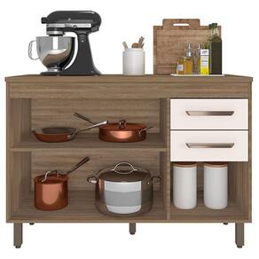 Balcão de Cozinha 3 Portas 2 Gavetas 120cm Flex com Tampo Carvalho OAK Off White - Poliman