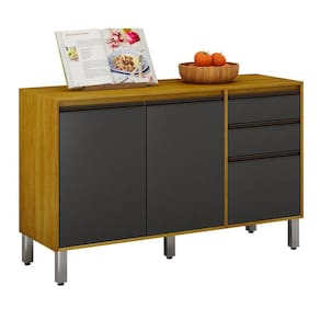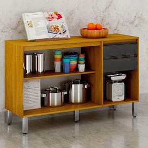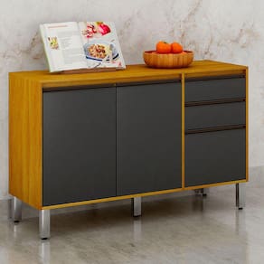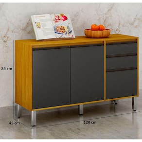 O Balcão 3 portas Eduarda é ideal para organizar seu espaço com praticidade e rapidez. O armário conta com 3 Portas com dobradiças metálicas, 1 prateleira, puxadores de alumínio bronze, pés reguláveis e 2 gavetas com corrediças telescópicas para ajudar na organização. O balcão possui um design elegante para complementar sua cozinha ou despensa.
