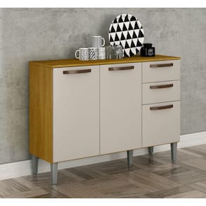 Balcão de Cozinha 3 Portas 2 Gavetas - Maísa-Cinamomo/Off White - CHF Móveis   Quer mudar os móveis da sua cozinha e não sabe por onde começar? Conte com o Balcão Maísa para trazer uma nova cara para o local.  O produto possui gavetas com corrediças telescópicas, puxadores ABS, divisor de talheres e pés com regulagem de altura. Foi feito para ocupar pouco espaço no cômodo e ao mesmo tempo garantir que todos os seus utensílios fiquem organizados, a peça dispõe de compartimentos para deixar tudo bem distribuído, com cada coisa em seu devido lugar. Aproveite!   Fazem parte do anúncio: 1 Balcão de Cozinha 3 Portas 2 Gavetas - Maísa - CHF Móveis Obs: Objetos de decoração não fazem parte deste anúncio.   Particularidades do Armário: Características: - Estrutura em MDP e MDF 15mm; - Puxadores de alumínio; - Corrediças telescópicas; - Pés com altura regulável; - Acabamento com pintura UV brilhante; - Peso máximo suportado: Prateleira 20kg;   Dimensões do Armário: Altura: 86 centímetros Largura: 1,18 metros Profundidade: 39 centímetros   Informações Importantes: - Produtos podem apresentar diferenças de tonalidades entre a foto na tela e o produto real, devido a calibração de cor de tela.  - Limpar com flanela ou pano macio. Não utilizar álcool. Não utilizar produtos abrasivos ou corrosivos. - Nós prezamos pela qualidade da entrega em primeiro lugar, trabalhamos com transportadoras altamente selecionadas e os melhores materiais de embalagem. - A montagem é de total responsabilidade do comprador. Antes de comprar, verifique o espaço disponível para a montagem. - Certifique-se de que o produto caiba em elevadores e vãos de escadas, não fazemos içamentos ou desmontagens de produtos. Quaisquer despesas deste tipo ficam a cargo do cliente. - Garantia de 3 meses contra defeitos de fabricação.
