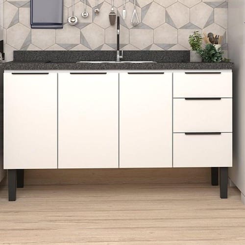 Balcão de Cozinha 3 Portas 3 Gavetas Júpiter Branco