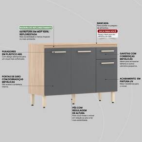 Balcão de pia 3 Portas e 1 Gaveta Dama