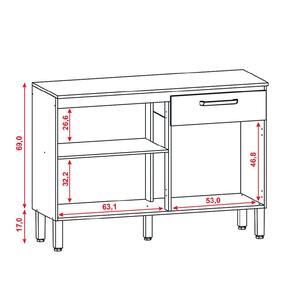 O Balcão de Cozinha Versalhes, amplo e versátil veio para garantir praticidade em seu dia a dia! Possui 3 portas com dobradiças metálicas e 1 gavetas com corrediça telescópica metálica que permite ampla abertura com deslizamento suave. Além de possuir excelente espaço interno, para copos, xicaras pratos e demais utensílios domésticos, e pés reguláveis que não agridem o piso. Confeccionado com produtos de qualidade, que oferece ao móvel beleza, resistência, durabilidade!