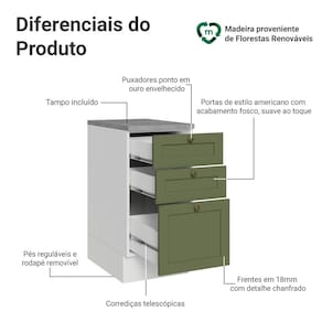 Balcão de Cozinha 40 cm 3 Gavetas Branco/Verde Vik Madesa