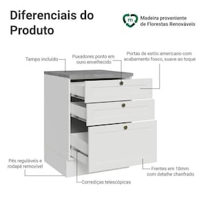 - Um (1) Balcão com três (3) gavetas (Acompanha o tampo)