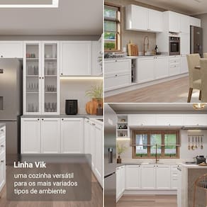 Além de trazer elegância, a linha Vik é funcional em cada detalhe. As portas possuem dobradiças com amortecimento, garantindo um fechamento suave e silencioso. Cada detalhe foi pensado para tornar sua casa mais elegante e funcional.