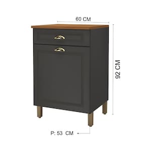 Tipo de móveis de cozinha: Balcão | Altura (cm): 92 | Conteúdo da embalagem: 1 Balcão Modulado, Manual de Montagem e Kit Ferragens | Largura (cm): 60 | Profundidade (cm): 53 | Materiais do corpo: MDP | Quantidade de portas: 1 | Quantidade de gavetas: 1 | Cor: Chumbo