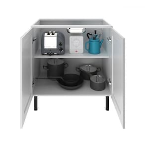 O(a) Balcão de Cozinha 80 Cm 2 Portas 1 Prateleira Cz3301 Branco - Tecno Mobili é produzido em MDF na escala de brilho Semi-Brilho, e possui um grau de dificuldade de montagem: Médio.