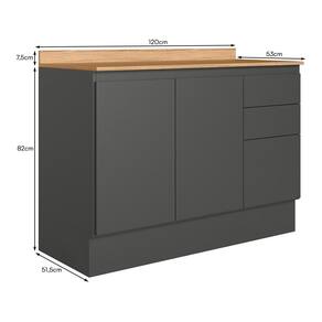 Dimensões: Tamanho do Balcão (L x A x P): 120 x 82 x 51,5 cm Tamanho do Tampo (L x A x P): 120 x 7,5 x 53 cm