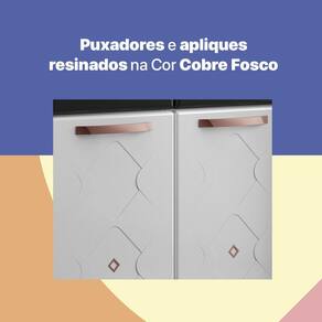O Balcão triplo Mirage New conta com um amplo espaço disponível para armazenar panelas e utensílios de maneira organizada em sua cozinha. Ele possui duas gavetas equipadas com corrediças metálicas, que abrem e fecham facilmente, além de uma frente falsa para pia. A parte interna é produzida em polipropileno, o sejam um plástico rígido e durável, que comporta até 5kg de peso. Os puxadores e apliques resinados na "cor" Cobre Fosco dão um ar sofisticado para a peça. Fabricado em aço, este balcão recebe pintura eletrostática e anticorrosiva, com acabamento brilhoso. O tratamento recebido na pintura garante resistência e durabilidade ao móvel. Leve mais beleza e funcionalidade para a sua casa com o Balcão Mirage New!