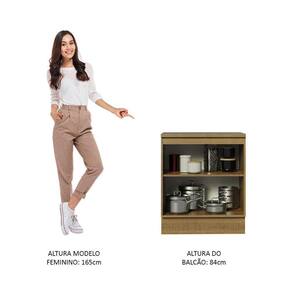 O móvel acompanha tampo em pintura amadeirado Rustic, que pode ser recortado para colocação de cooktop. Além disso, possui pés reguláveis em PVC e rodapé removível em MDP.