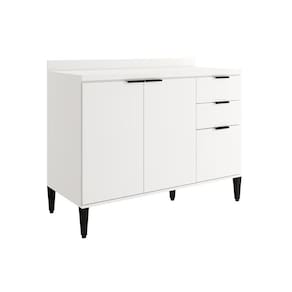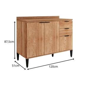 Tipo de Dobradiças - Dobradiças Metálicas Tipo de puxador - Alumínio Escovado Quantidade de Portas - 3 Portas de Abrir Tipo de Gaveta - Gaveta Externa Quantidade de Gavetas - 2 Gavetas Tipo de Corrediça - Telescópicas Material das Prateleiras - Prateleira Madeirada Quantidade de Prateleiras - 1