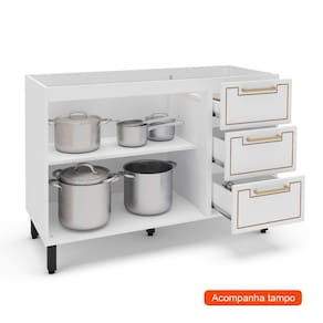 Que tal o Balcão de Cozinha Amara? Bons móveis de cozinha, além de deixarem o cômodo mais bonito, precisam nos ajudar a ter uma rotina prática, não é? Unindo funcionalidade e bom gosto, o Balcão Amara tem ótimo espaço interno para você armazenar utensílios, potes ou outros itens necessários ao uso diário - organização não vai faltar no seu cantinho. De visual clássico e charmoso, ele combina facilmente com outros módulos de cozinha que você precisar, como armários aéreos e paneleiros. Completo para o dia a dia :) Marca: Modern