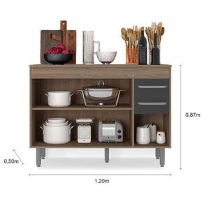 Balcão de Cozinha Ambiente Barcelona 120cm Carvalho Grafite - Poliman