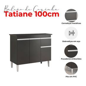 Balcão de Cozinha Ambiente Tatiane com Tampo 100cm Preto Fosco - AJL