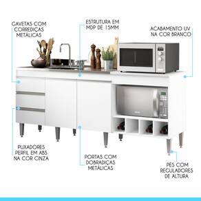 Observacoes: Nao acompanha pia, cooktop e tampo para pia. Tampo para cooktop possui ranhura para instalar o cooktop, caso nao recortar pode ser utilizado normalmente como balcao. Produto montado igual a imagem, nao pode alterar lado na montagem.