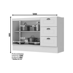 Dimensões(Cm): Comprimento(Profundidade): 51cm x Largura: 120cm x Altura: 82cm