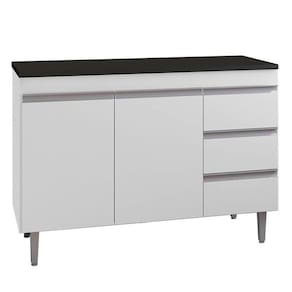 Balcão de Cozinha Andréia Branco com Tampo 100 cm Preto Fosco AJL