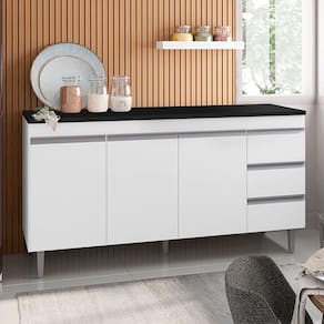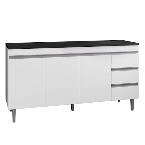 Balcão de Cozinha Andréia Branco com Tampo 150 cm Preto Fosco – AJL