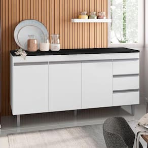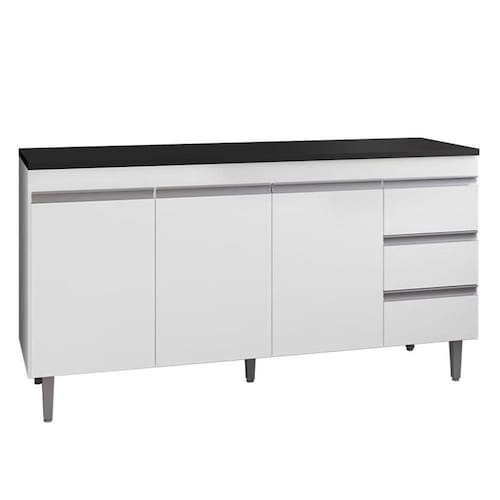 Balcão de Cozinha Andréia Branco com Tampo 160 cm Preto Fosco – AJL