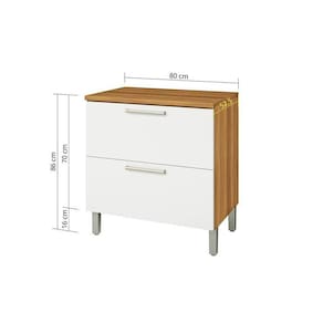 Balcão de Cozinha Burguesa Premium 1 Porta e 1 Gaveta c/ Tampo 80cm Freijó/Branco - Nesher