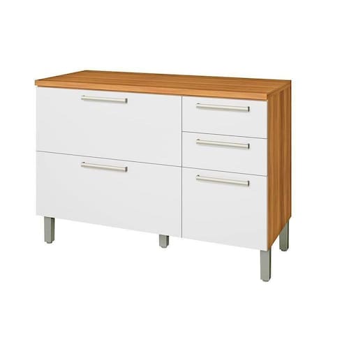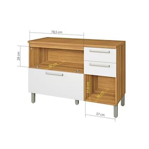 Balcão de Cozinha Burguesa Premium 2 Portas e 3 Gavetas c/ Tampo 120cm Freijó/Branco - Nesher
