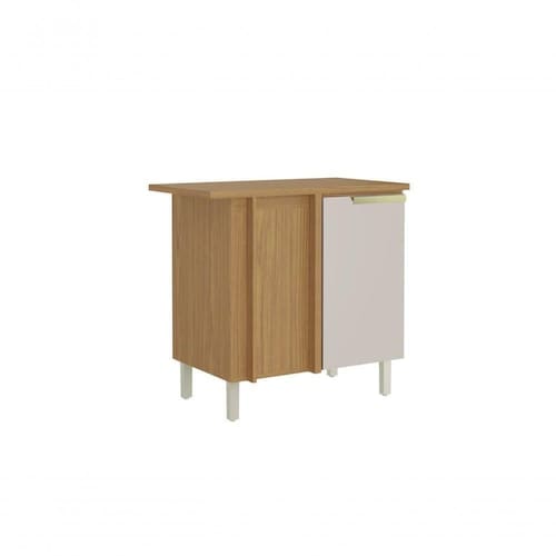 Balcão Canto MDF 1 Porta New Porto Com Tampo, corpo em MDF 15mm pintado com filete de papel, caixas em papelão revestidas com plástico termo retrátil, corpo em chapa MDF pintado padrão madeirado, Gaveta com corrediças Telescopicas.
