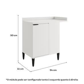 Especificações da modulação: Medidas totais: Largura: 94 cm | Altura: 90 cm | Profundidade: 51 cm Peso total: 29Kg Material do produto: MDP