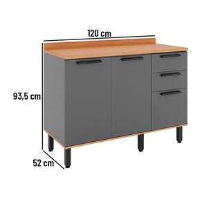 - 3 Portas e 2 Gavetas: Espaço amplo e organizado para armazenar utensílios e mantimentos.