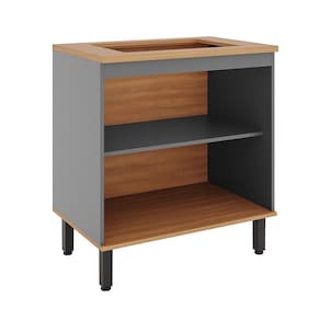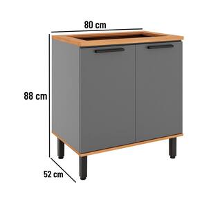 Balcão de Cozinha Castanha 800MM P/ Cooktop 5 Bocas C/ Tampo 2 Portas - Cinza/Freijó