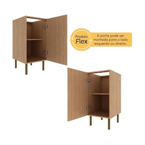 Facilidade e organização: Possui 1 porta com dobradiças com amortecedor Slow Motion e puxadores em alumínio, proporcionando um manuseio suave, prático e silencioso. Flex, a porta pode ser montada para o lado esquerdo ou direito. O amplo espaço interno permite acomodar utensílios de cozinha com eficiência, já que sua prateleira interna suporta até 5kg. Tampo não incluso.