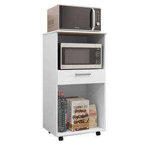 O Balcão é produzido em MDP de 12 e 15mm., com madeira reconstituída, que respeita o meio ambiente. Composto de duas portas e uma ampla gaveta onde são utilizadas dobradiças e corrediças 100% metálicas, nicho para micro-ondas com passa fio que facilita o acesso a tomadas na parede e tampo para forno elétrico ou outro eletroportátil. Os puxadores são ergonômicos em plástico resistente (poliestireno) com acabamento cinza e ponteiras metalizadas. Possui quatro rodizios em plástico resistente (poliestireno) que facilitam a movimentação do produto. Móvel perfeito para quem procura organizar seus ambientes.