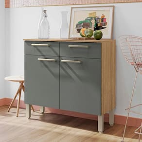O Balcão possui 2 portas e 2 gavetas destaca-se por sua praticidade e eficiência de uso, podendo ser utilizada como complemento de cozinha.