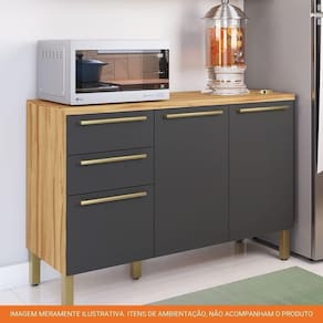 Produto: Balcão De Cozinha | Cor: Verde Cor: Amendoa/Chumbo