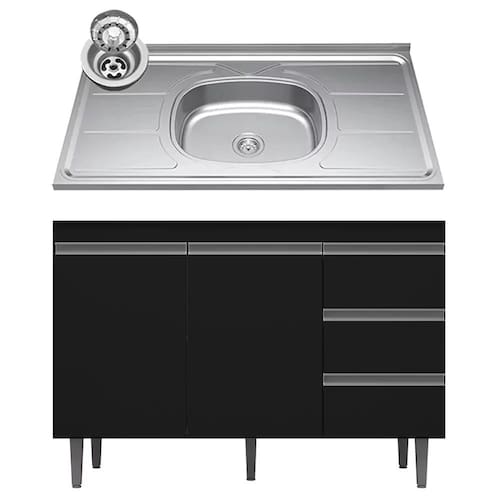 Se você está procurando um balcão compacto, prático e funcional para a sua cozinha o Balcão de Cozinha Com Pia Inox 100cm 3 Gavetas Andréia Preto, da AJL Móveis é perfeito!